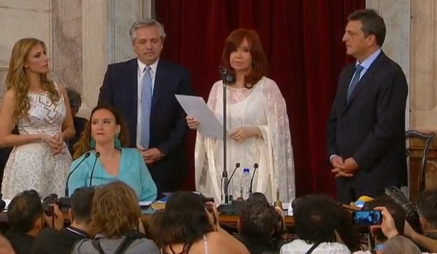 Cristina Elisabet Fernández de Kirchner tomó hoy posesión del cargo como vicepresidenta de la Nación para el período de 2019-2023 ante la Asamblea Legislativa, a las 11.58, luego de que la vicepresidenta saliente, Gabriela Michetti, le tomará el juramento protocolar.