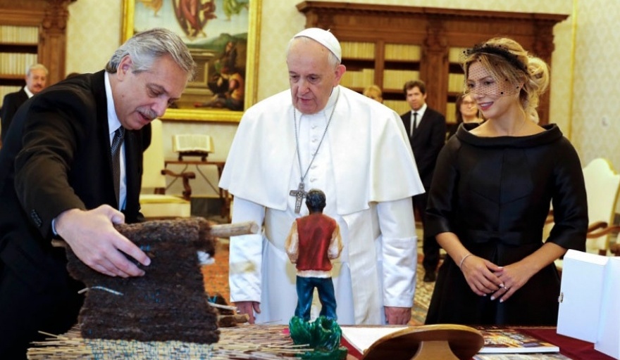 El momento en que el papa Francisco y Fernández intercambiaron regalos