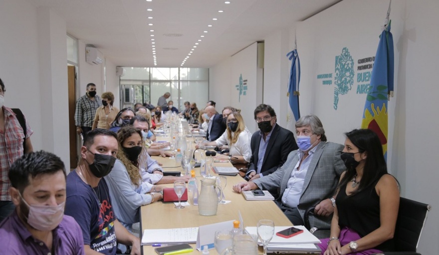 El director general de Cultura y Educación, Alberto Sileoni, y los ministros de Hacienda, Pablo López, y de Trabajo, Mara Ruiz Malec, mantuvieron un encuentro con los representantes del Frente de Unidad Docente Bonaerense (FUDB), que analizarán la propuesta que contempla un incremento del 17% en marzo y del 28% en julio, lo que alcanza una suba en septiembre, con respecto a diciembre de 2021, del 41,8%.