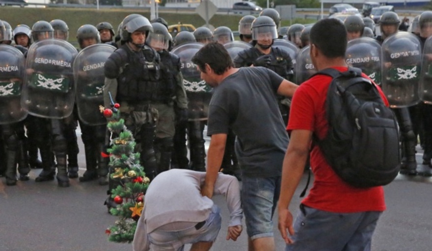 En ese momento un grupo de gendarmes comenzó a golpear y luego avanzaron los escuadrones y camiones hidrantes con agua, gases y balas de goma.