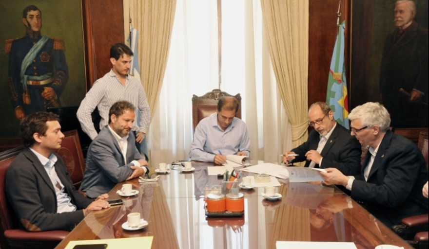 El intendente de La Plata, Julio Garro y el presidente de la Universidad Nacional de La Plata, Raúl Perdomo, firmaron un convenio para que un equipo de expertos de la Facultad de Ingeniería lleven adelante un seguimiento sobre los trabajos hídricos y de bacheo.