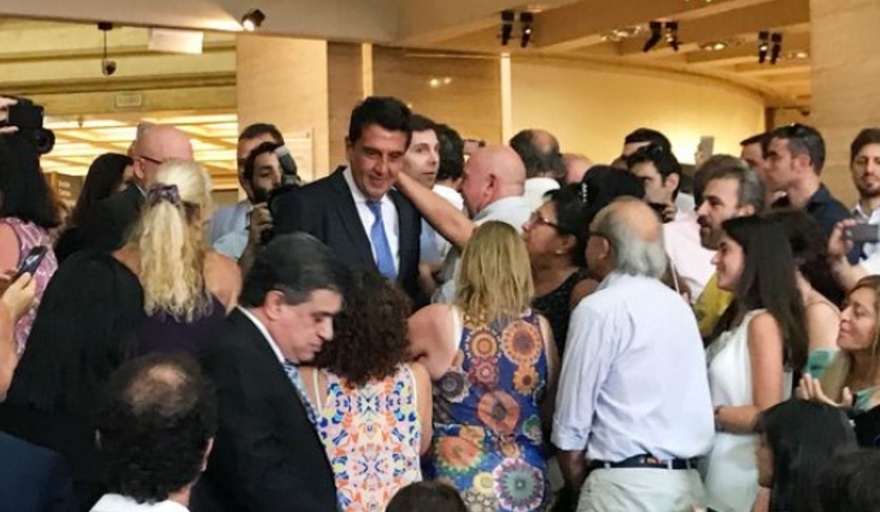 El acto de despedida de Melconian fue armado por La Bancaria, el gremio que conduce Sergio Palazzo, de estrechos vínculos con el kirchnerismo. El dirigente sindical lo acompañó durante su discurso y hasta se fundieron en un abrazo.