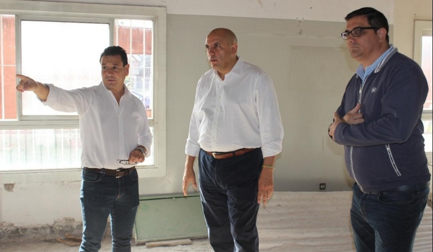 El diputado provincial de Cambiemos por la primera sección electoral, César Torres, recorrió obras en el Hospital Provincial Héroes de Malvinas y en la Escuela Primaria Número 2 junto al presidente del bloque de concejales de Cambiemos en Merlo, David Zencich, y otros dirigentes locales.