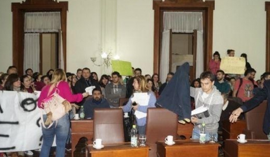 Desde el bloque que responde al Intendente Britos se argumentaba que no podía ser la municipalidad la que absorbiera el costo económico del ajuste y en ese momento un militante kirchnerista agredió a la Concejal Liliana Varela. Tal actitud motivó que el bloque britista abandone la sesión, pero al no retirarse Cambiemos la Sesión siguió. En la retirada, el Presidente del Bloque oficialista Lucas Burgos fue insultado por una ex candidata a Concejal de Unidad Ciudadana en las legislativas del 2017.